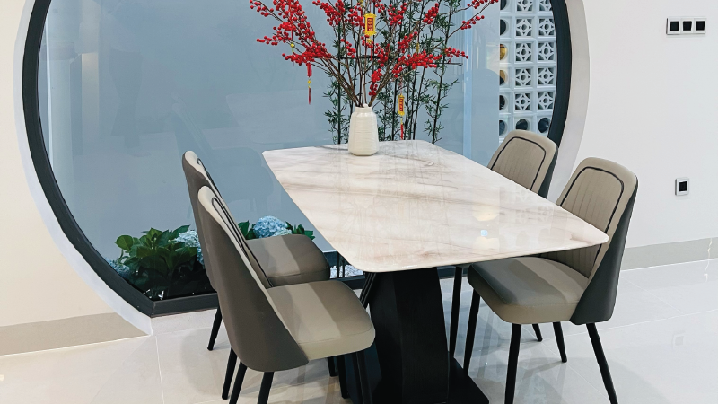 Ở dự án này, quá trình thi công trải qua nhiều thử thách: từ việc xử lý kỹ thuật kết cấu với các đường cong khó, đến việc lựa chọn vật liệu phù hợp với khí hậu nhiệt đới – tất cả đều được giải quyết với sự đồng hành sát sao giữa tôi và gia chủ. Việc thiết kế – thi công liền mạch, do một đội ngũ thống nhất đảm nhiệm, giúp tiết kiệm thời gian, chi phí và giảm thiểu tối đa sai lệch.